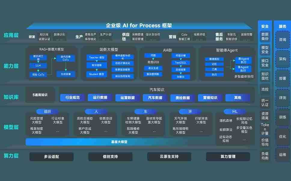 端到端的一站式AI工作空间深度融合了从企业战略规划到日常经营的全流程业务板块,,,,定向解决车企内部领域多、、、、部门多、、链条长、、、、场景碎片化等难题,,,,支持车企快速构建以AI为核心的生产力写作体系,,实现任务执行与AI能力的无缝集成与交互